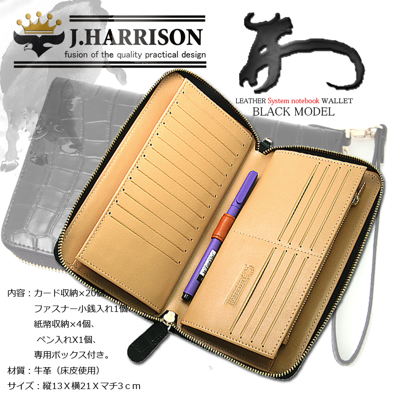 落ち着いたブラックに染めた渋くてカッコいいシステム手帳財布です。