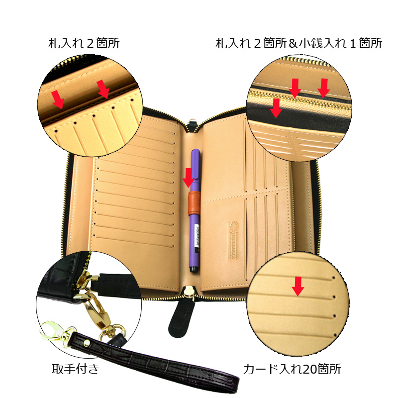 美しいクロコダイル型押しを贅沢に使用