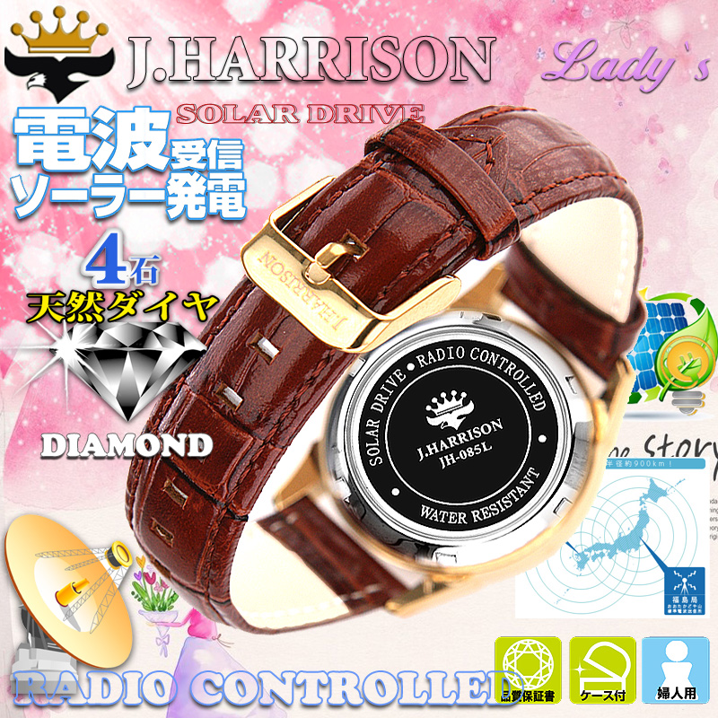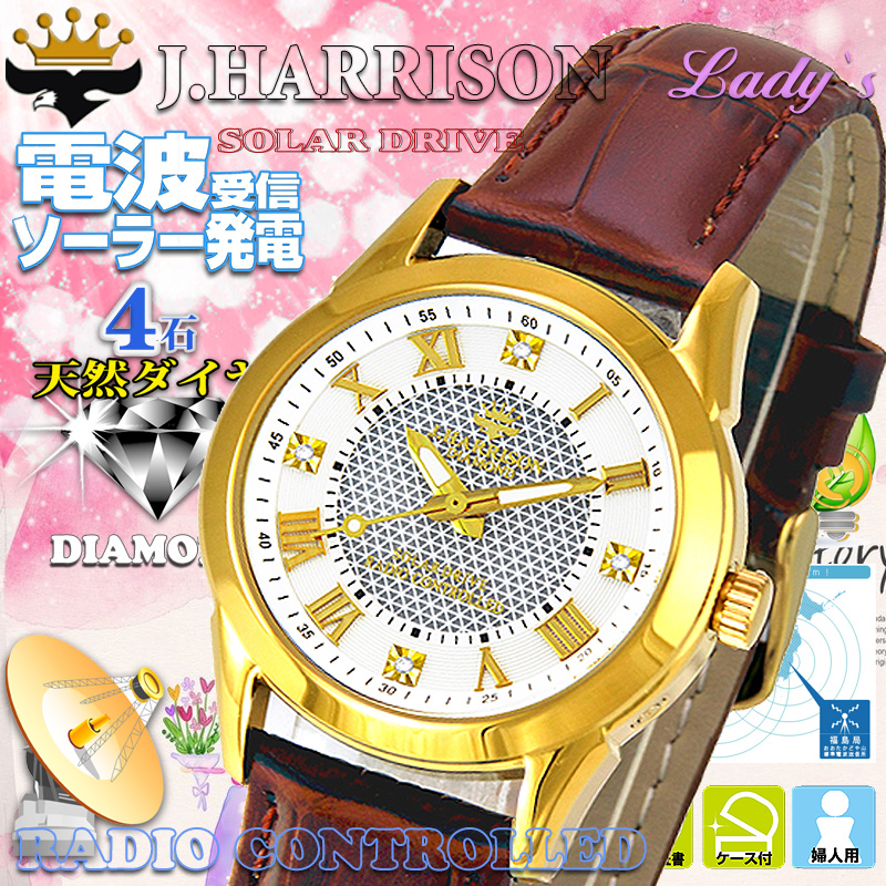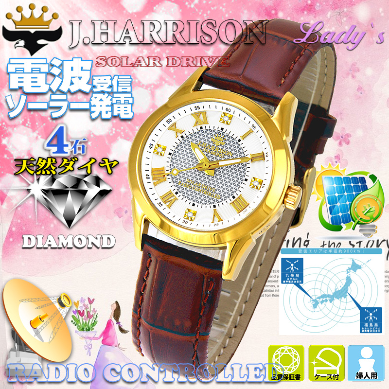商品仕様:ムーブ:ソーラー電波、時計ケース:ステンレスガラス:クリスタルガラス時計ベルト:牛革&PU留め金:ステンレス、裏キャップ:ステンレス&クリスタルガラス文字盤:4石天然ダイヤモンド付、 商品データ:縦42mmX横36mmX厚さ13mm