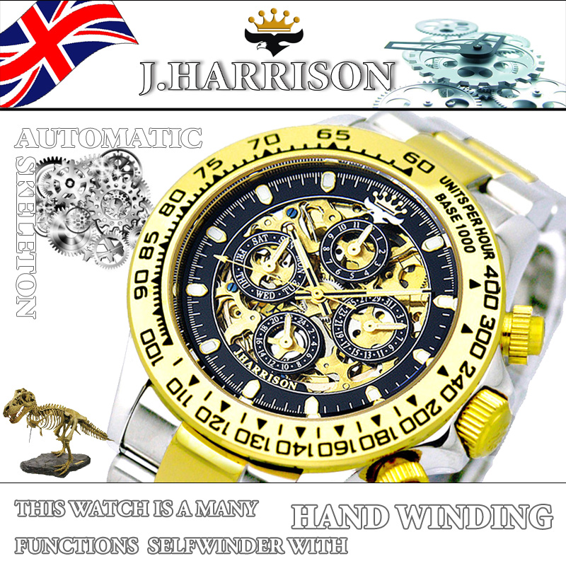 商品名前 機械式多機能両面スケルトン時計J.H-003GB