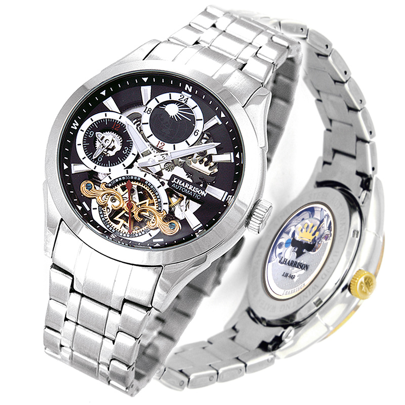 腕時計は男性にとっての最高のファッションアイテム。魅力的な究極のシンプルデザイン。ビジネス、カジュアルどちらにも合わせやすく、アナログ表示腕時計です。9時の位置にデュアルタイム時間を表示でき、海外旅行時に便利。12時位置にサン&ムーン表示。しっかりした質感とシンプルでかっこいいデザインを併せ持つ。この腕時計があなたのセンスの良さをアピールしてくれるに違いありません。
