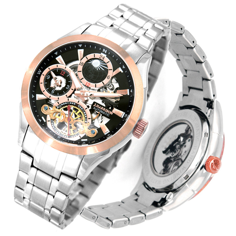 腕時計は男性にとっての最高のファッションアイテム。魅力的な究極のシンプルデザイン。ビジネス、カジュアルどちらにも合わせやすく、アナログ表示腕時計です。9時の位置にデュアルタイム時間を表示でき、海外旅行時に便利。12時位置にサン&ムーン表示。しっかりした質感とシンプルでかっこいいデザインを併せ持つ。この腕時計があなたのセンスの良さをアピールしてくれるに違いありません。
