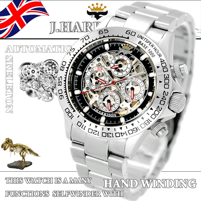 商品名前 機械式多機能両面スケルトン時計J.H-003SB