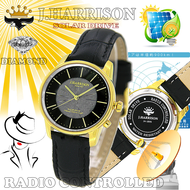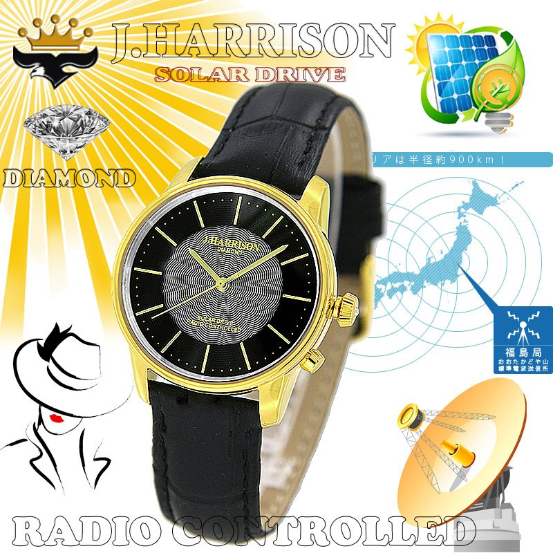 ソーラー電波 腕時計 標準電波を受信して自動で正確な時刻を刻んでくれる電波時計。 リューズに埋め込まれた天然ダイヤ(カボション)が高級感を上品に演出します。 ソーラーシステム搭載で面倒な電池交換も不要。 全国対応の電波ソーラー腕時計なので、 どこにいても正確な時刻に 自動修正、 面倒な時刻合わせが一切不要な電波ソーラー腕時計。 [仕様] あかり発電(ソーラー電源) 日常生活防水。 電波受信機能 定時受信、強制電波受信 電波受信電波: 長波(周波数40/60KHz)、 両局自動選局受信(1日最大3回) 高精度のアナログ表示機能を備えたソーラー駆動の電波時計。 全国対応の電波ウォッチなので、どこにいても正確な時刻に とってもエコで地球にやさしい腕時計です。