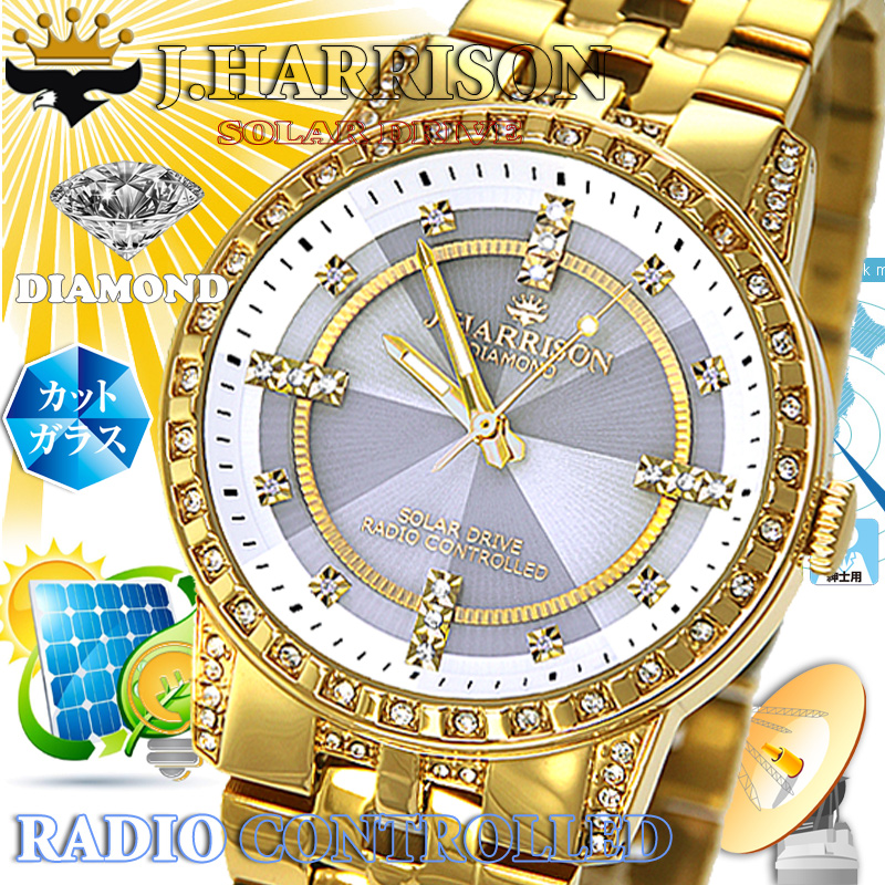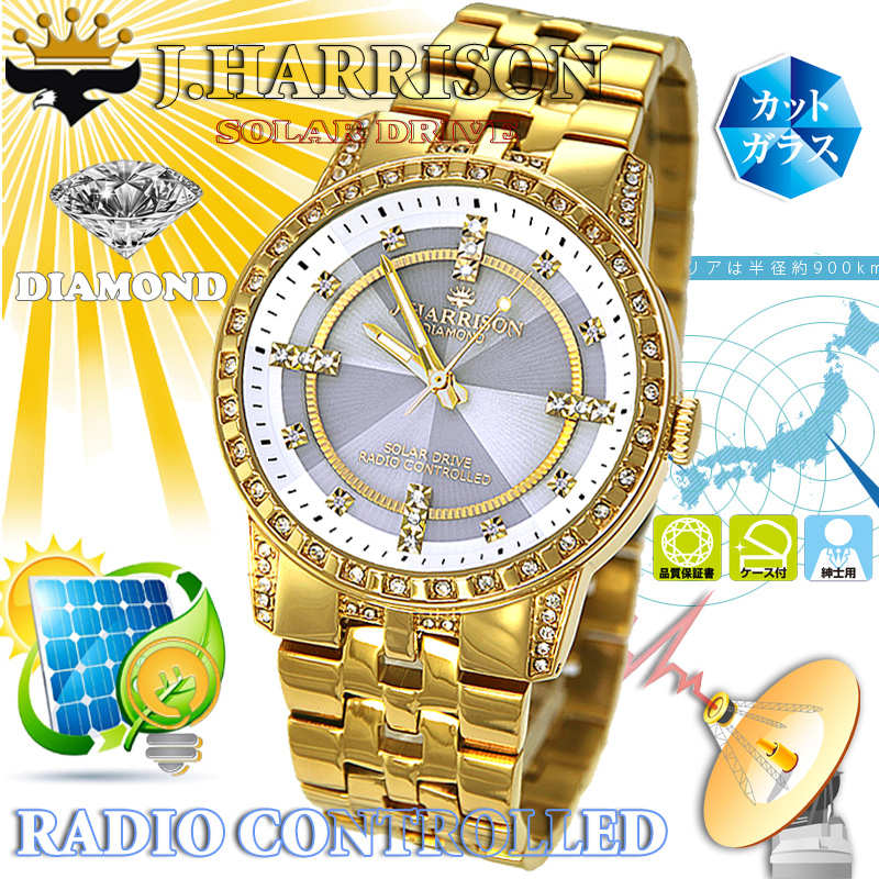 商品名前 天然ダイヤ3石付・シャイニング ソーラー電波時計 JH-1980GW