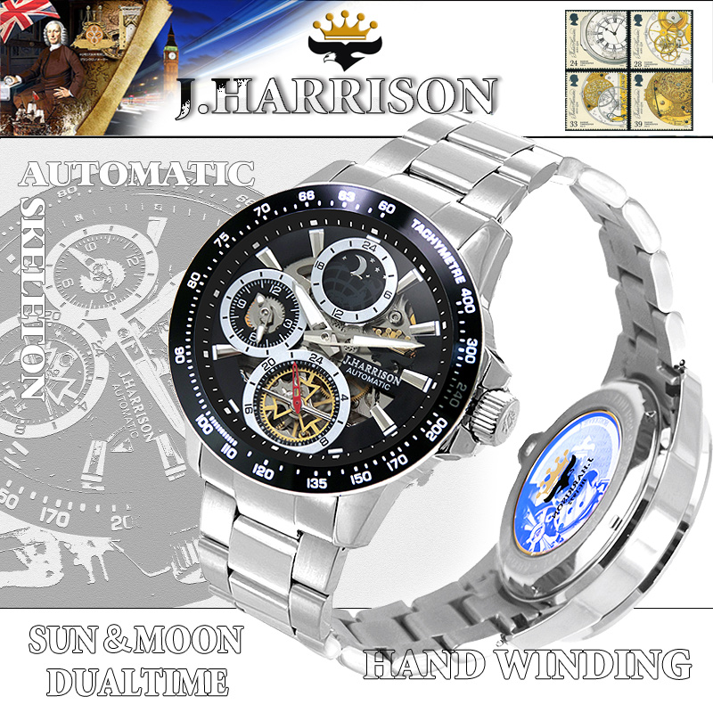 商品名前 サン&ムーン・デュアルタイム付多機能自動巻&手巻腕時計JH-1972BS
