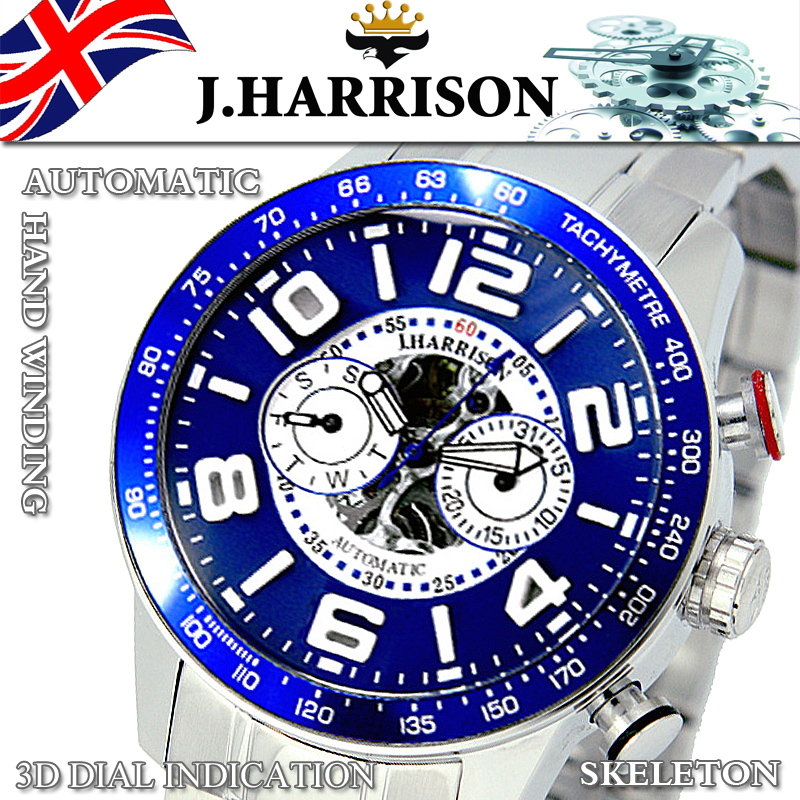 商品名前 3D多機能付両面スケルトン自動巻時計J.H-020BL