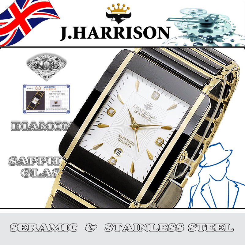 商品材質: 4石天然ダイヤモンド付、サファイヤガラスを使用、 ケース&バックル:ステンレス。 ベルト:セラミック&ステン レス、