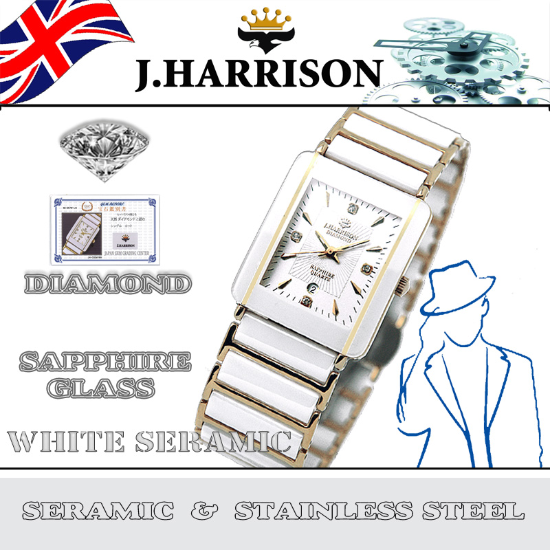商品材質: 3石天然ダイヤモンド付、サファイヤガラスを使用、 ケース&バックル:ステンレス。 ベルト:セラミック&ステン レス、