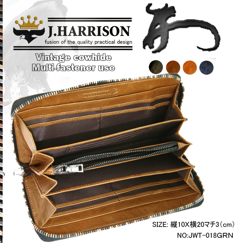 商品名前 牛革ビンテージ感ラウンドマルチファスナー付大容量財布JWT-018TBR